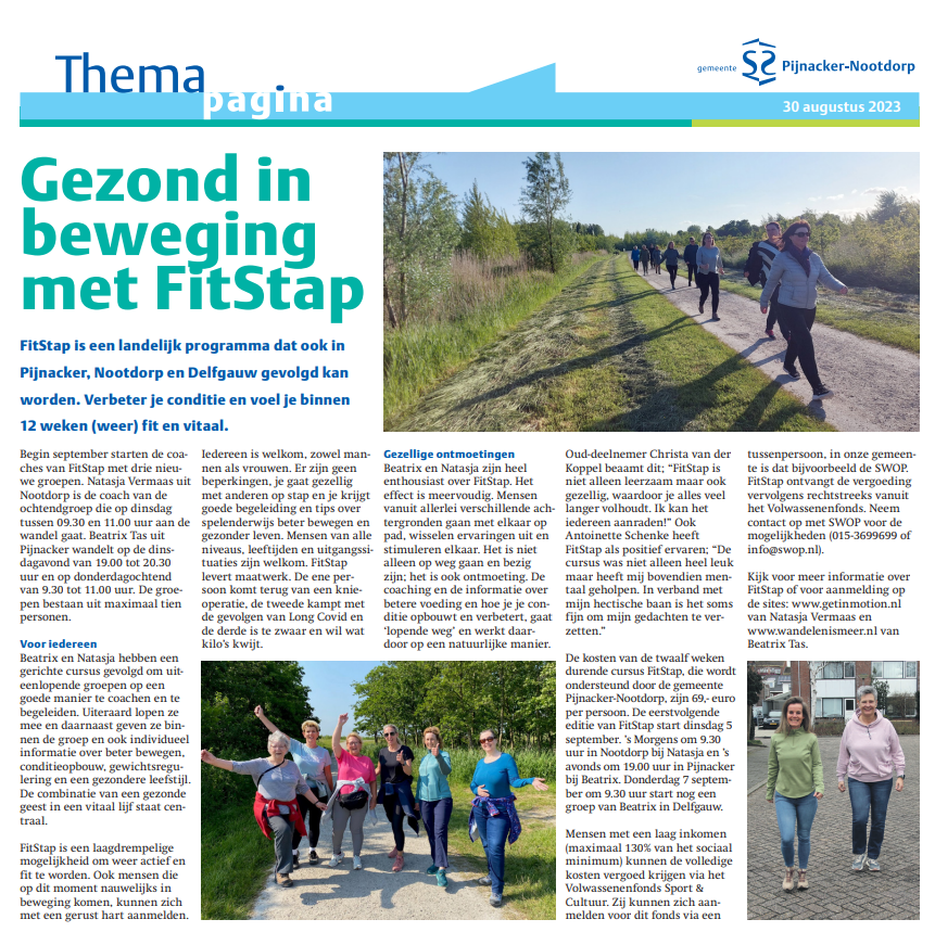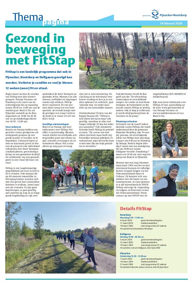 Leuke themapagina in de Telstar over de voorjaarseditie 2024 van FitStap in Pijnacker-Nootdorp. Neem jij de eerste stap?