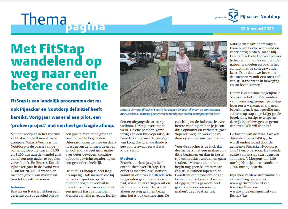 In her voorjaar van 2023 werd ik samen met Beatrix door de Telstar bevraagd over FitStap in Pijnacker-Nootdorp.